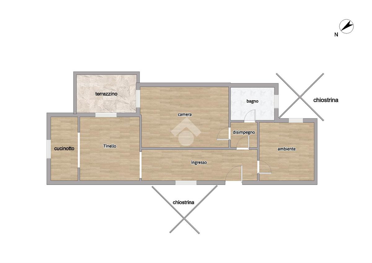 La soluzione si trova al quarto piano di una palazzina signorile in cortina con ascensore ed è composta da: ingresso, cucina con tinello, camera da letto matrimoniale di generosa metratura, un’ ulteriore ambiente adibito a soggiorno, bagno con vasca e finestra ed un terrazzino abitabile.