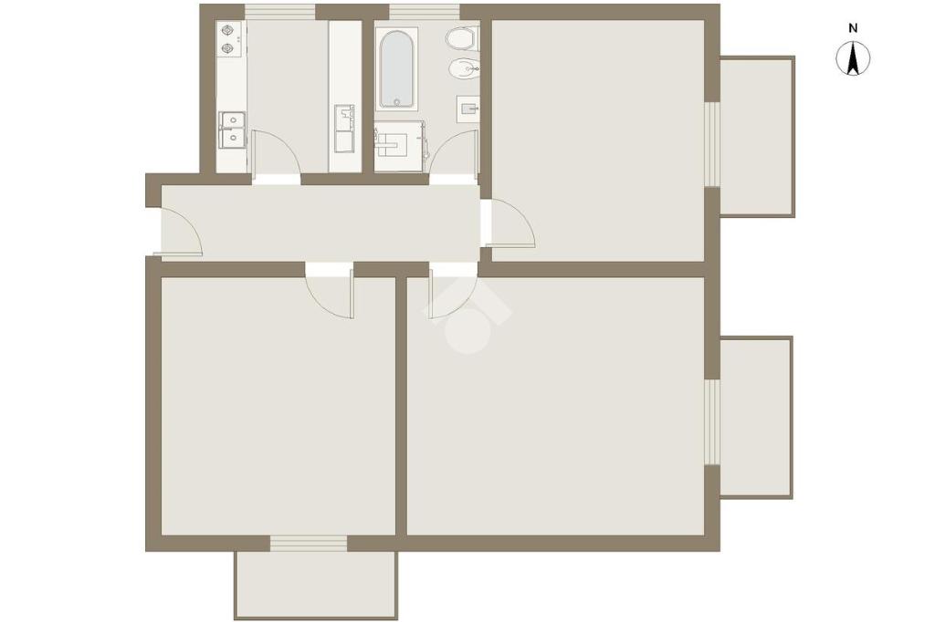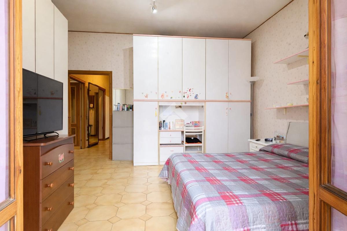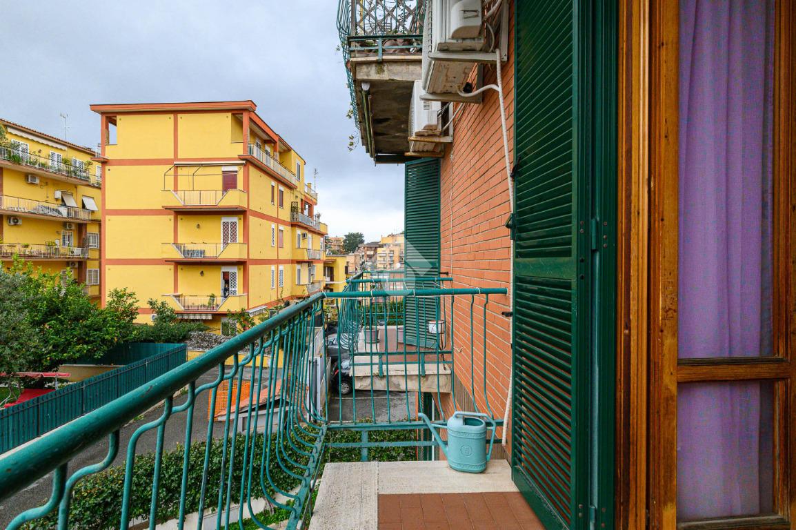 La soluzione si compone di ingresso, soggiorno, cucina abitabile, due ampie camere matrimoniali, bagno con finestra dotato di doccia e vasca e tre balconi.